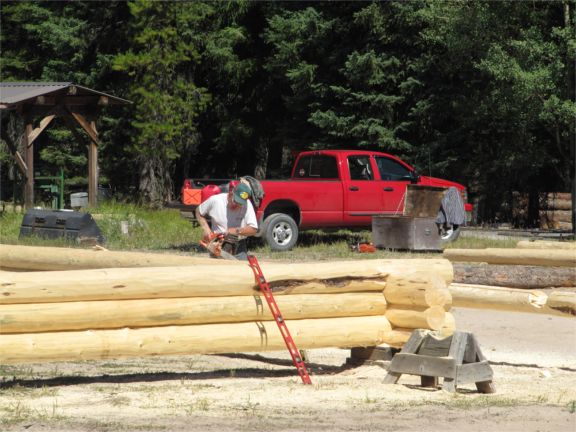 They are working on the basement of the cabin. Can't see too much yet but the views are great. The reason it looks so shallow is that the house will be built up a few feet. The basement walls are eight feet tall. When they were digging the basement, they ran into a 8-12 ton rock. Fortunately, the excavator was able to move it and lift it out. Sometimes they have to dig a hole beside it and bury it. FYI: three inches of snow today in Whitefish which isn't that far away. Yikes!